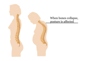Osteoporosis is a disease that affects the inside of your bones, making them fragile. The images above show how Osteoporosis causes large holes to develop in the inside of your bones, which is why they break easily. Broken bones are also known as fractures. Example: You have been told that you have fractured vertebrae/ collapsed vertebrae/crushed vertebrae, which all mean you have broken bones in your back.